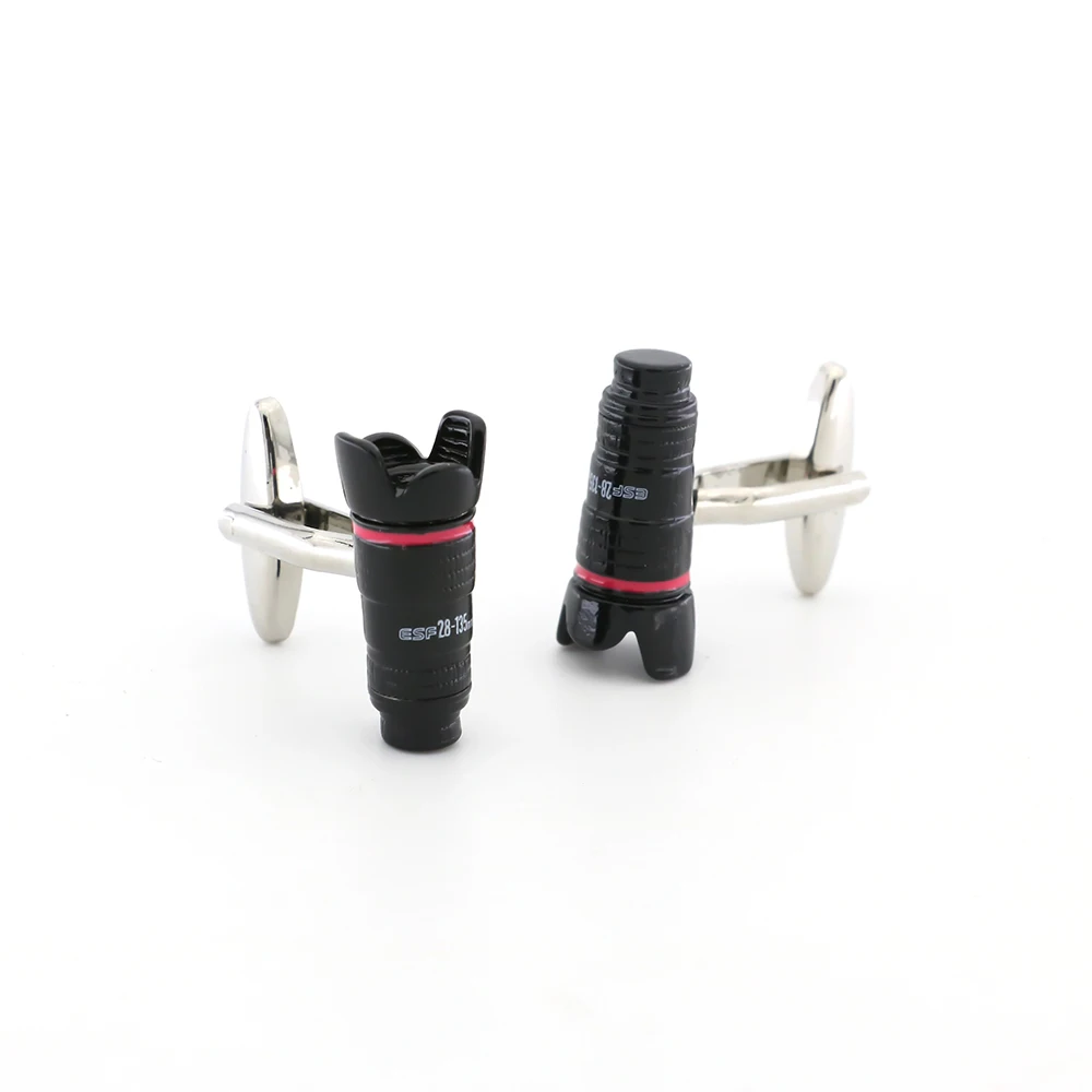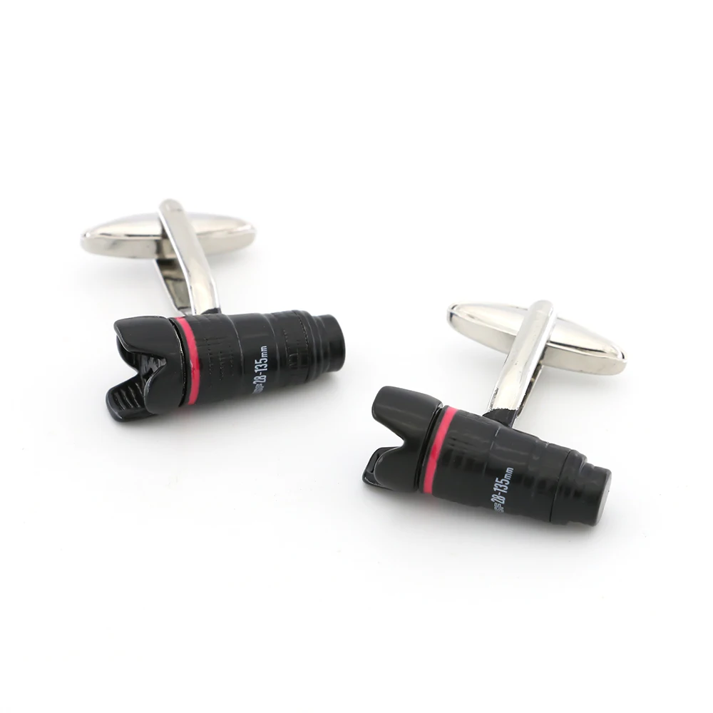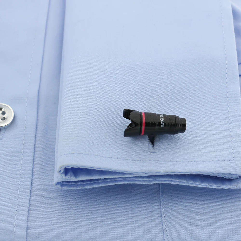 Crafted with precision, these cufflinks replicate the look of miniature camera lenses in stunning detail. Featuring a sophisticated combination of black and silver finishes, they offer a sleek, modern look that pairs perfectly with both formal and semi-casual attire.