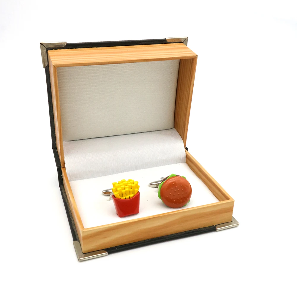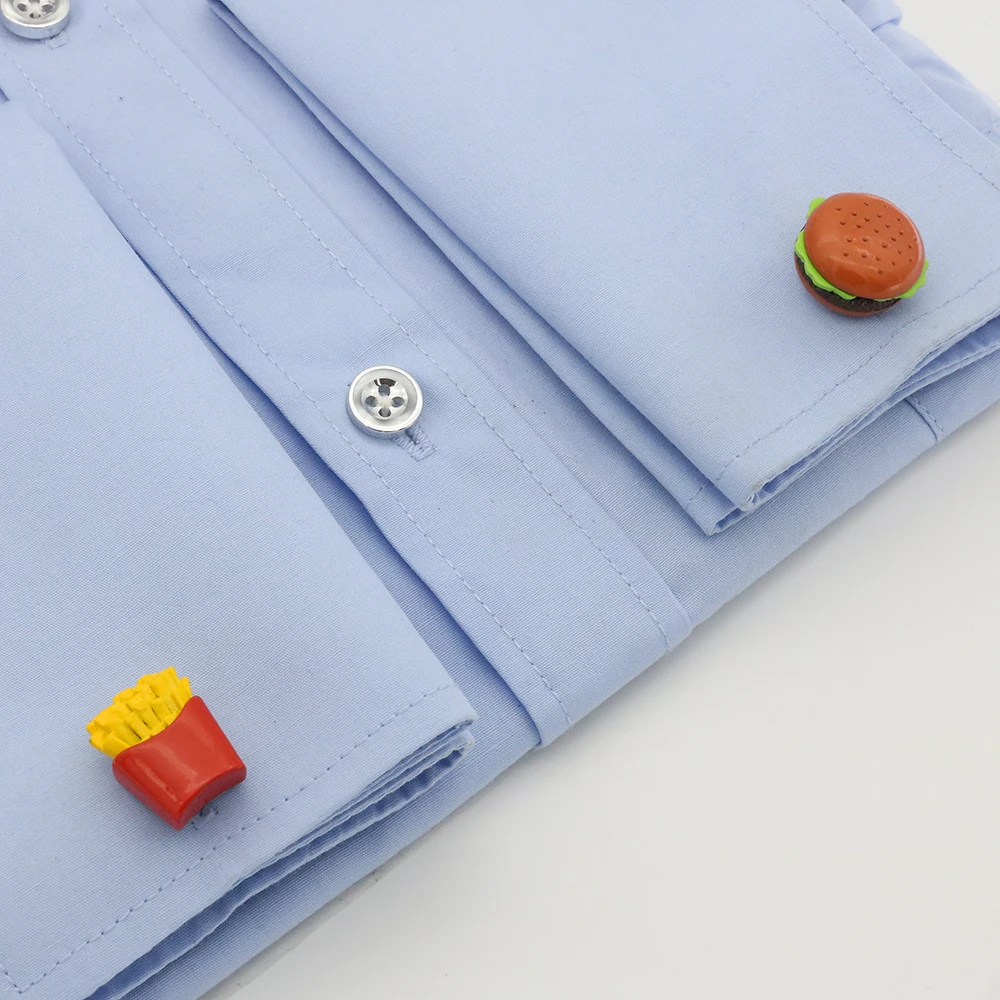 These cufflinks are meticulously designed with attention to detail. The set features a realistic hamburger and a portion of French fries, complete with vibrant colors that perfectly capture their iconic look. Whether you want to showcase your love for good food or simply add a unique element to your wardrobe, these cufflinks are a perfect choice.