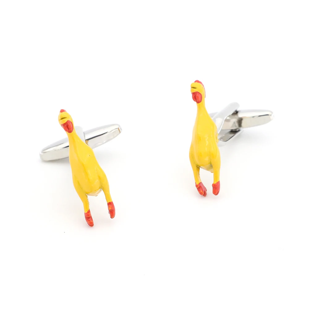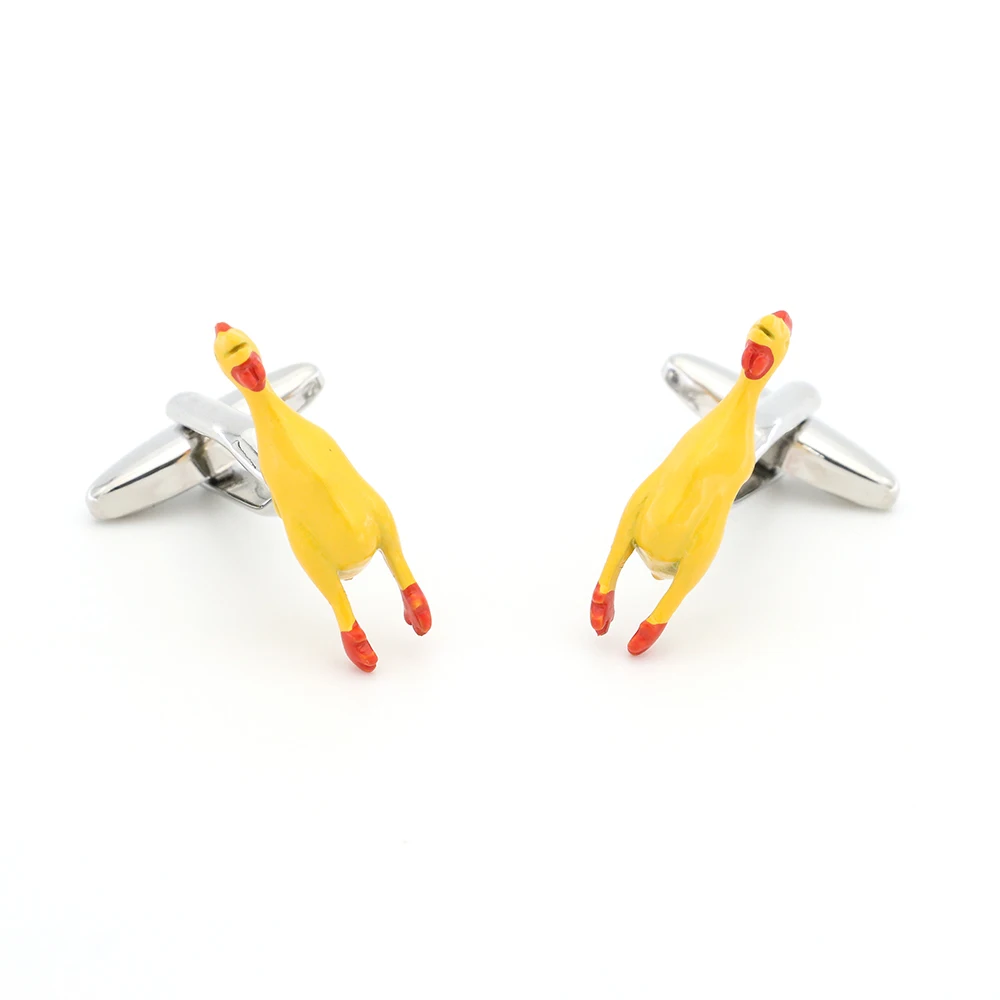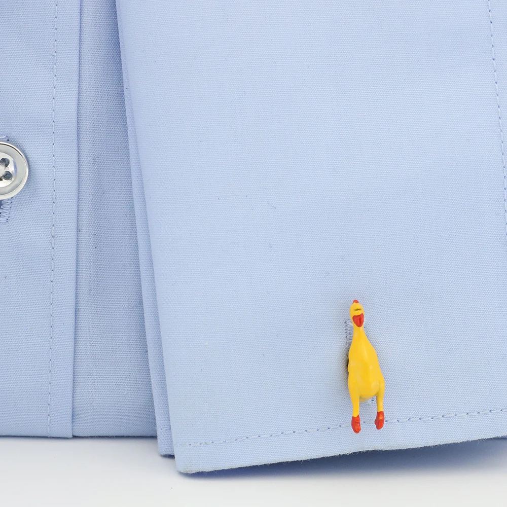 These cufflinks capture the unmistakable look of the plastic chicken dog toy, featuring the bright yellow and orange colors and signature shape that make them instantly recognizable. Despite their humorous vibe, the cufflinks are crafted with high-quality materials and finished with glossy detailing to ensure they stand out without looking cheap. Against a crisp white shirt, these vibrant cufflinks add a pop of color and a delightful twist to any outfit.